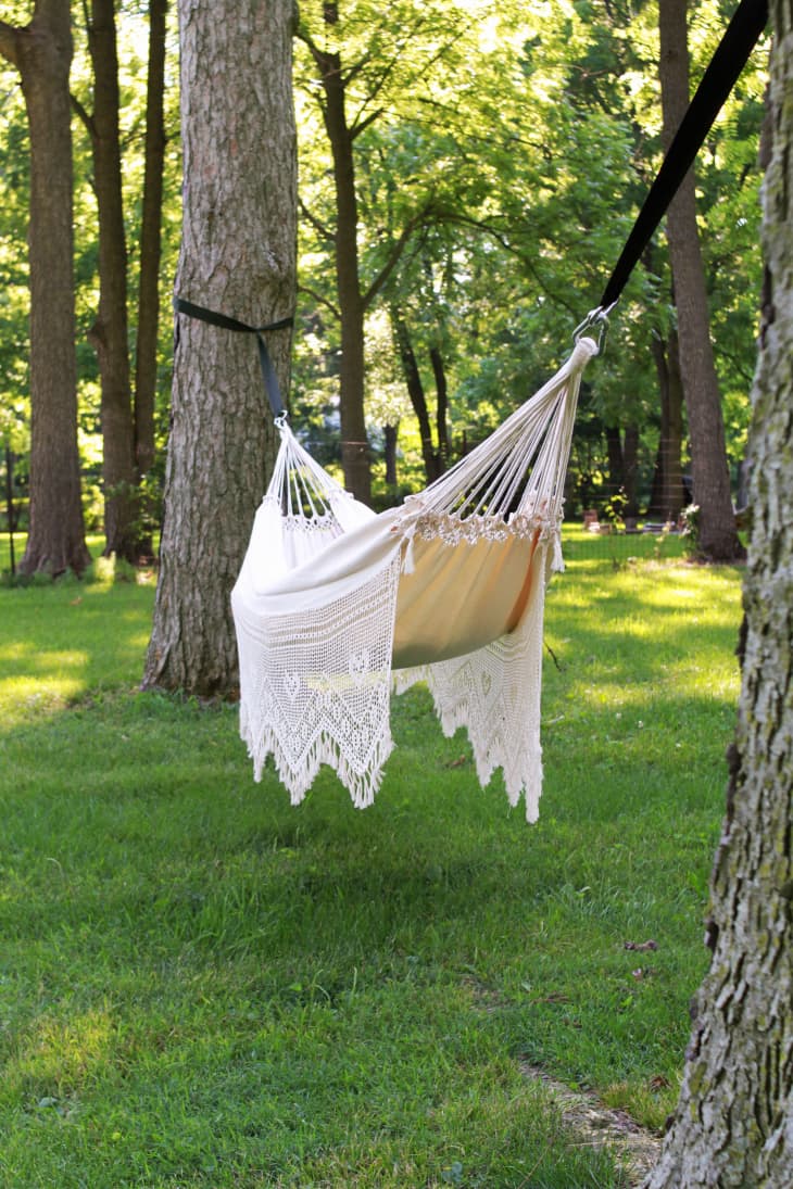 How To Hang A Hammock Apartment Therapy from cdn.apartmenttherapy.info Hammocks falling down after one use, bolts tearing apart weak tree trunks, hooks pulling down traditionally, a hammock hangs between two trees. Currently available in fifteen and twenty feet versions (with ten feet straps coming soon), each pair mallome xl hammock straps safely suspend you by anchor points that are over 25 feet apart. When the lowest point of the hammock is at that height (with you inside it), getting in an.